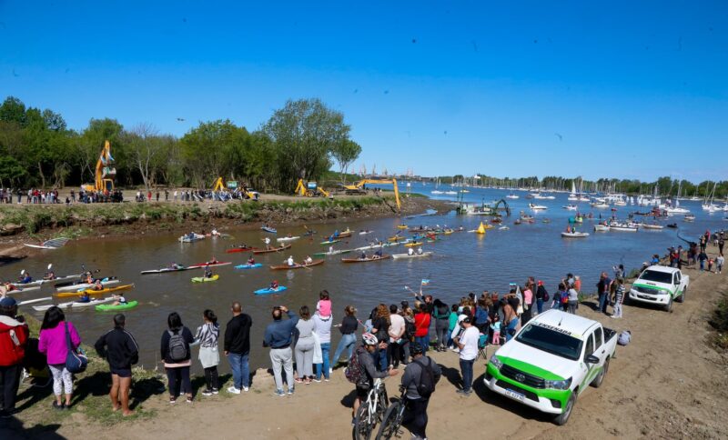 Con la participación de más de 400 embarcaciones de la región, el Intendente Mario Secco dejó inaugurada este sábado la obra del dragado del canal del Río Santiago de la ciudad.