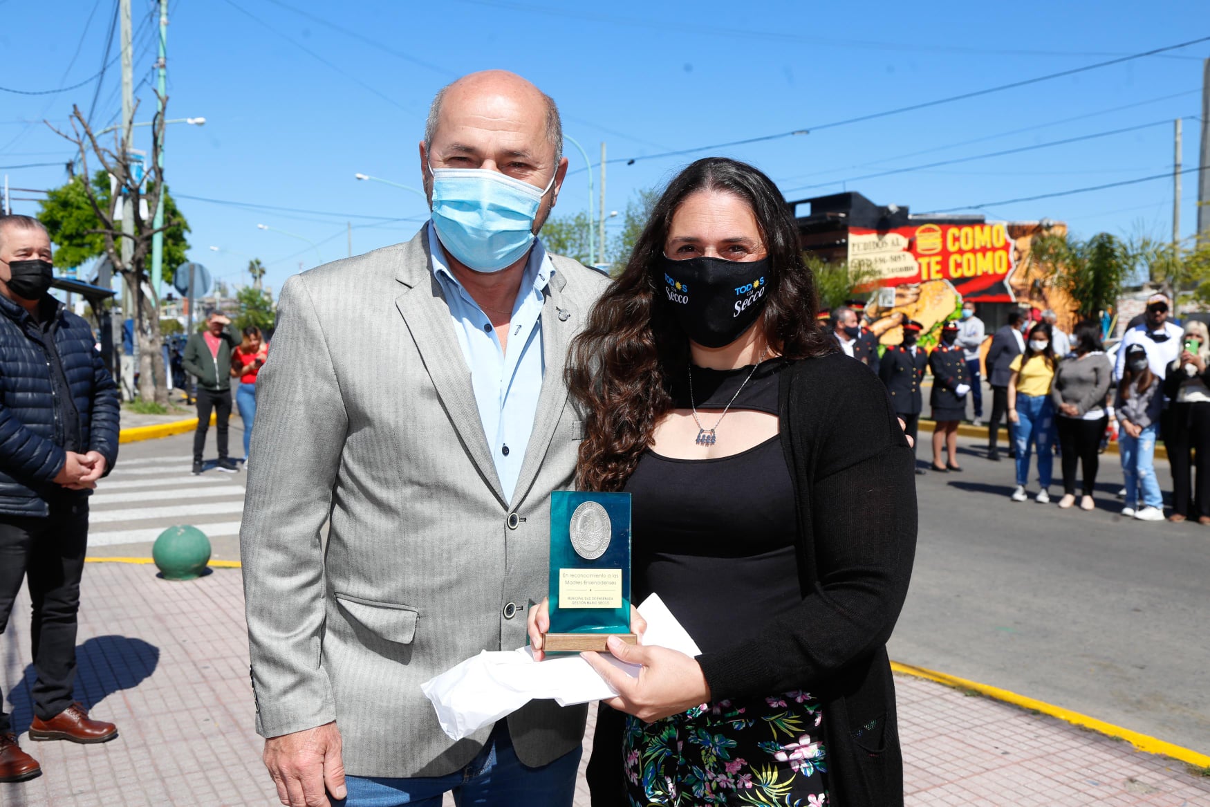 Se les entregó un presente a representantes de diversos sectores, como Salud, Educación, Municipio, Cooperativas, Iglesia Evangelica, Iglesia Católica y Club Cambaceres en sus 100 años. También, distintas instituciones llevaron ofrendas florales que colocaron al pie del Monumento.