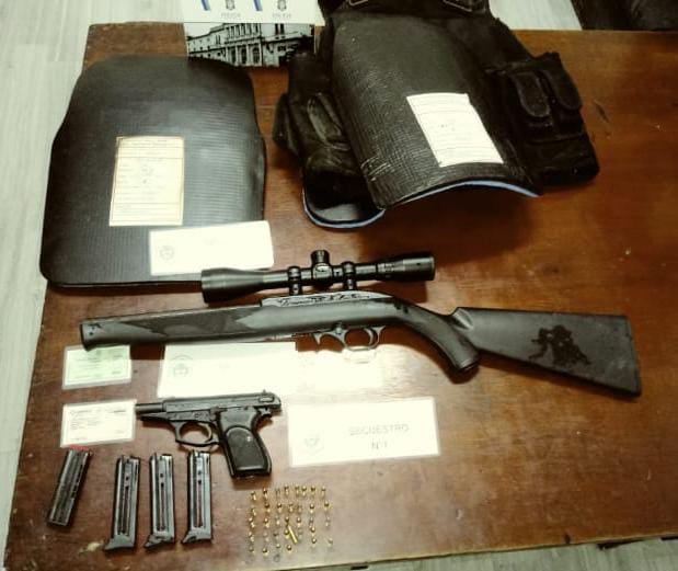 Minutos después, al llegar la policía le terminó encontrando en su poder una pistola, una carabina, una gran cantidad de municiones y hasta un chaleco antibalas.