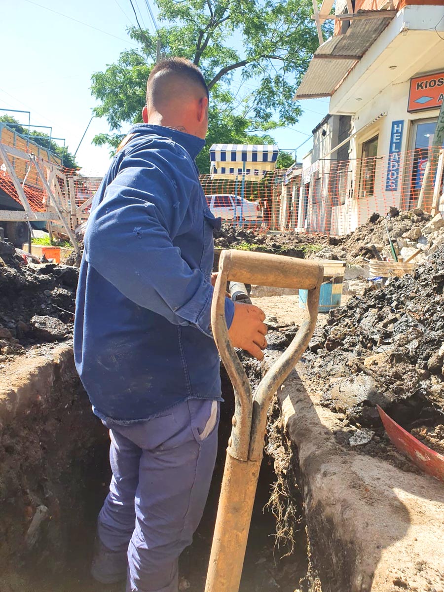 Estas tareas, iniciadas en la jornada de hoy, implicaron un cateo preliminar para la ubicación la rotura de la cañería, que se encontraba debajo de un desagüe pluvial.