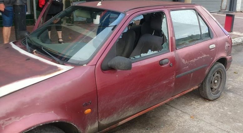 Tras algunos minutos, los vecinos comenzaron a asomarse a la calle con el objetivo de entender qué había sucedido. Algunos de los frentistas divisaron un vehículo marca Ford modelo Fiesta de color bordó sin la ventana del conductor y con astillas de vidrio esparcidas sobre la cinta asfáltica.