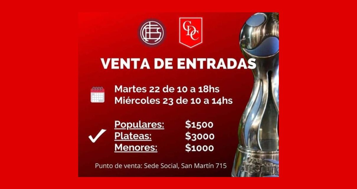 La venta anticipada se efectuará  en la sede social el día martes, de 10 a 18, y el miércoles, de 10 a 14.