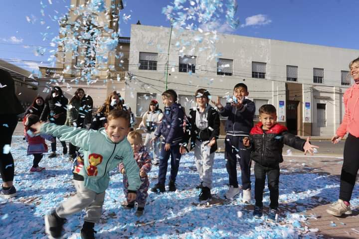 Se entonaron las estrofas del Himno Nacional y hubo palabras alusivas a la fecha. Luego la Inspectora realizó la toma de la Promesa de los alumnos, que agitaron sus banderas celestes y blancos mientras un nube de papelitos con los mismos colores inundaban la plaza.