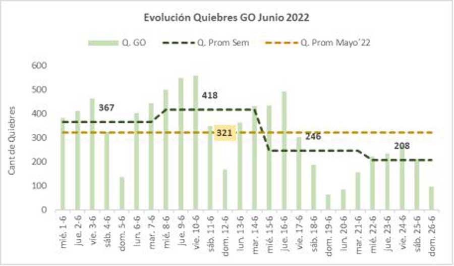 “Como resultado, en la tercera semana de junio se observó una disminución de los quiebres en estaciones del 50% respecto a la segunda semana”, señalaron las mismas fuentes.