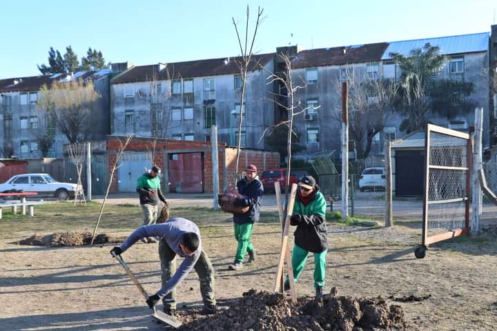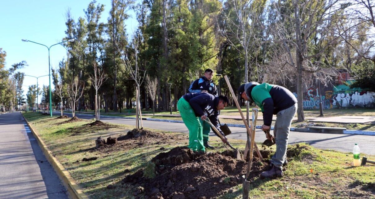 La Municipalidad no detiene la marcha del Plan de Forestación. En esta ocasión, se efectuó la plantación de nuevos árboles y recuperación de ejemplares en el club 5 de Mayo. Asimismo, comienza la colocación de árboles en dicho barrio En forma paralela, la cuadrilla de riego recorre las zonas forestadas.