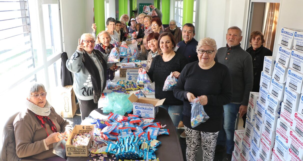 Abuelos de Casa de Día preparan bolsas de golosinas para el Dia del Niño