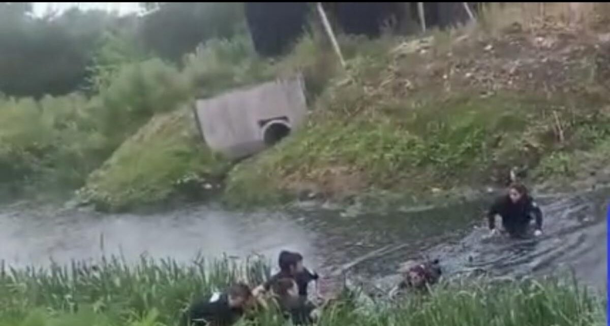 Policías se metieron en un arroyo para detener a un violento