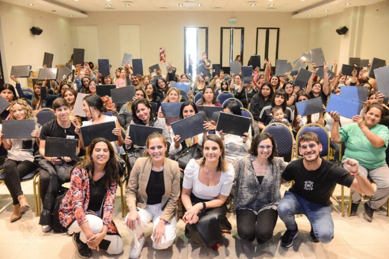 La ministra de las Mujeres, Políticas de Género y Diversidad Sexual de la Provincia Estela Díaz junto a su par de la Nación Ayelén Mazzina, entregaron 530 tablets a promotoras territoriales del Registro Tejiendo Matria de Ensenada, Berisso y La Plata.