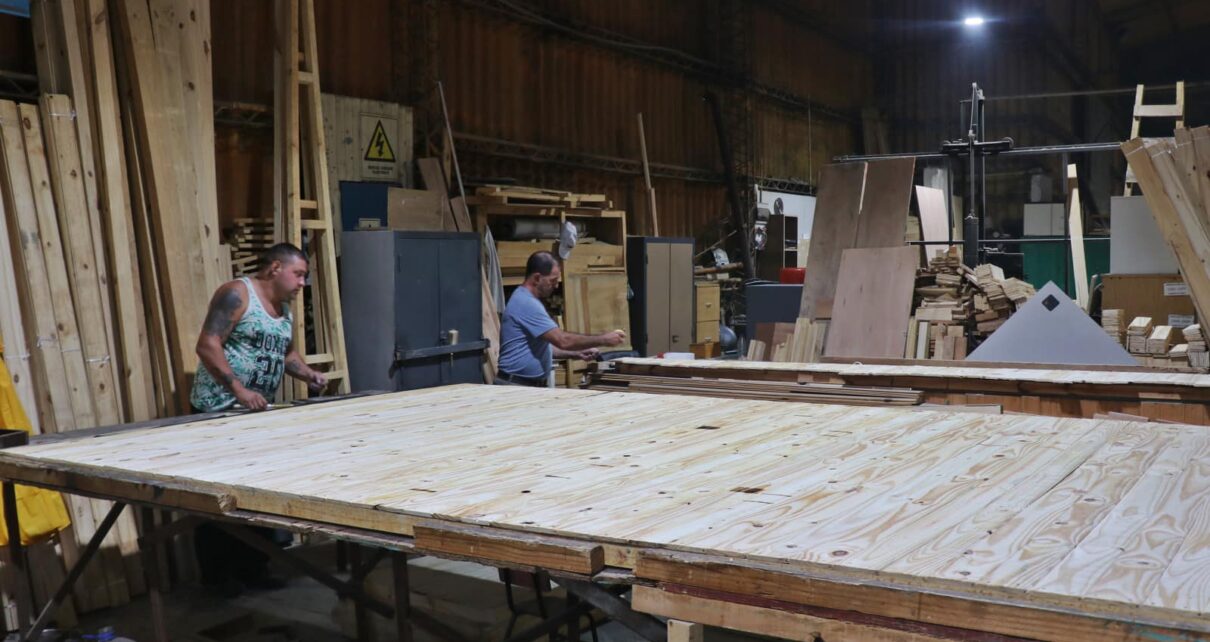 Carpintería, donde se construyen las viviendas sociales (para casos de emergencia), mantenimiento de muebles de establecimientos públicos y trabajos en general con madera.