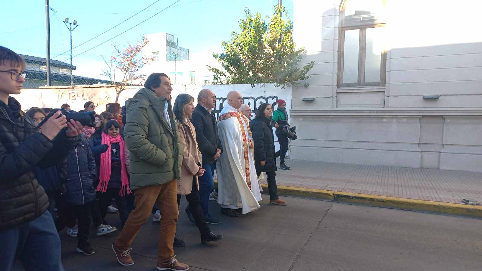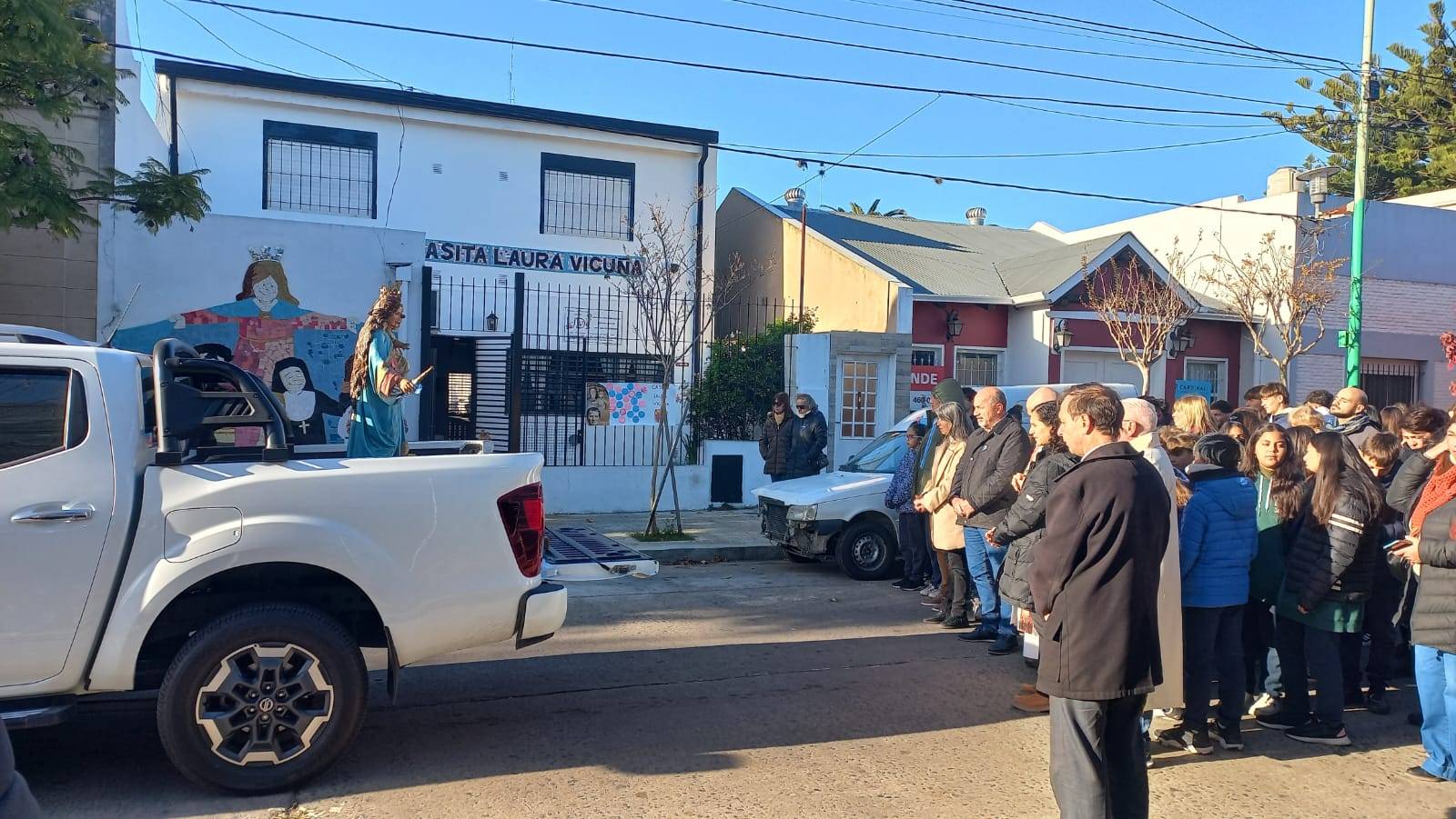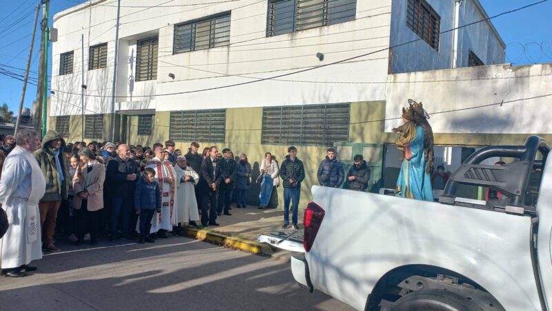 La Procesión encabezada por autoridades del establecimiento educativo, las hermanas a cargo de la Casa y el propio Intendente Mario Secco junto distintas autoridades del Distrito, comenzó por la Calle Aristóbulo del Valle y Ferella hasta La Merced, pasando por la Casita Laura Vicuña y el Colegio Don Bosco (cuya comunidad también acompañó la recorrida) y la Parroquia La Merced.