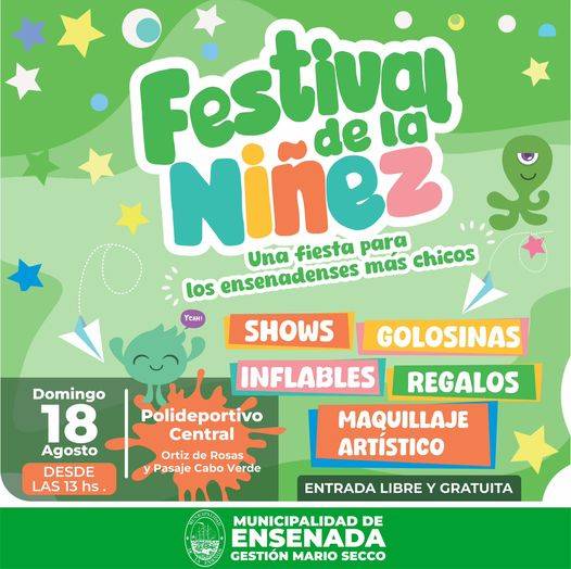 El Municipio celebrará el domingo 18 de agosto el Día de la Niñez con un gran festejo para toda la familia en el Polideportivo Central de Ortiz de Rosas y Pasaje Cabo Verde.