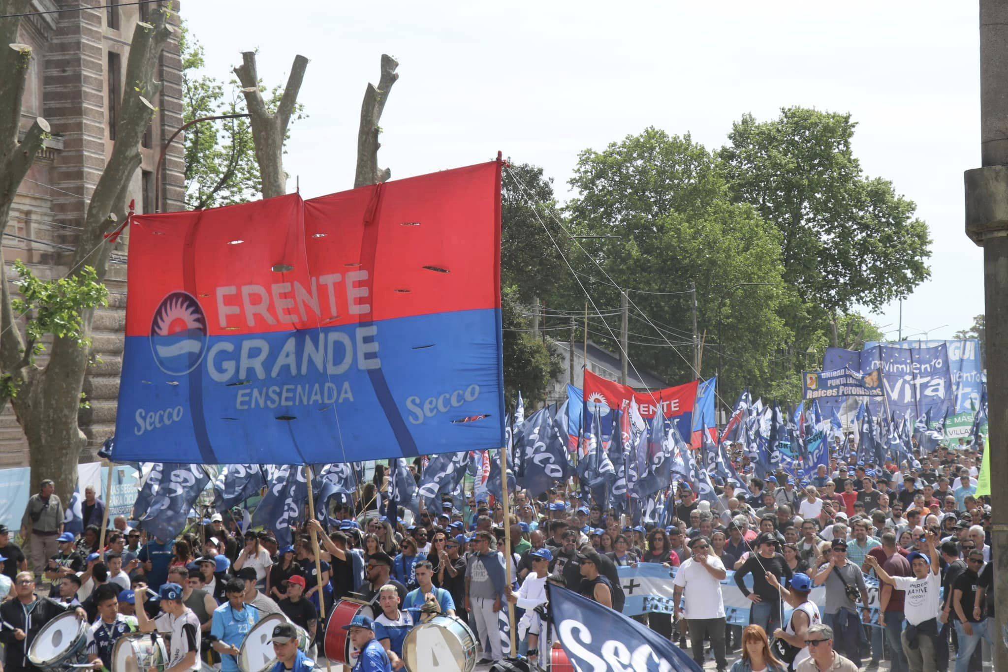 A lo largo de la movilización participaron funcionarios y sindicalistas de la ciudad que respaldaron la posición de Kicillof y del intendente Secco.