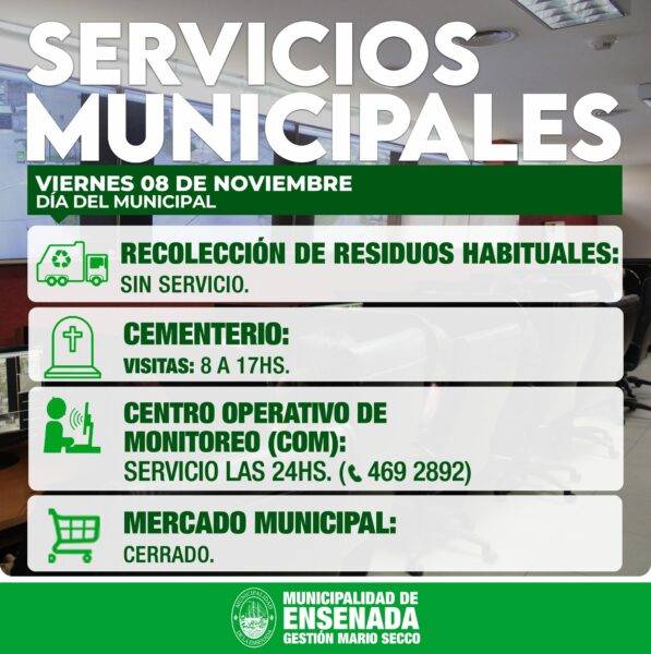 El Municipio informó cómo serán los servicios en la ciudad de Ensenada durante el viernes 8 de noviembre, asueto por el Día del Trabajador Municipal.
