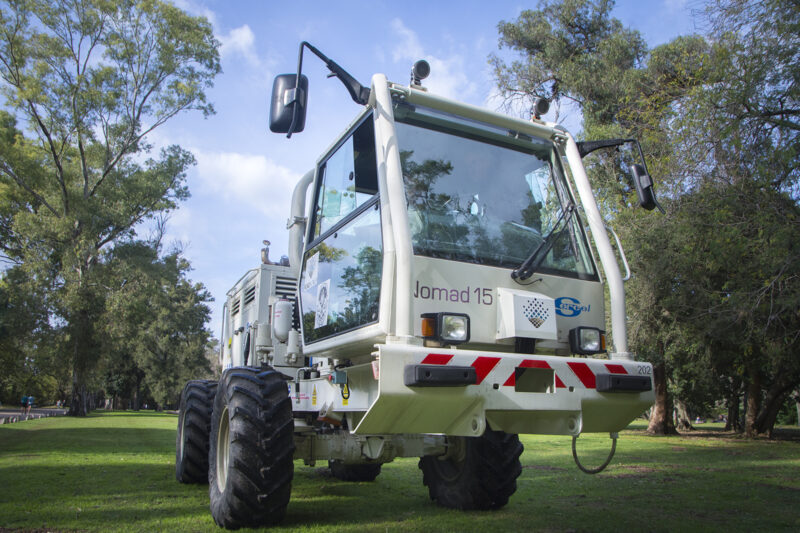 Es un vehículo que posee montada una fuente sísmica, que emite una señal codificada al subsuelo. El mismo se utilizará para docencia, investigación, extensión y transferencia.