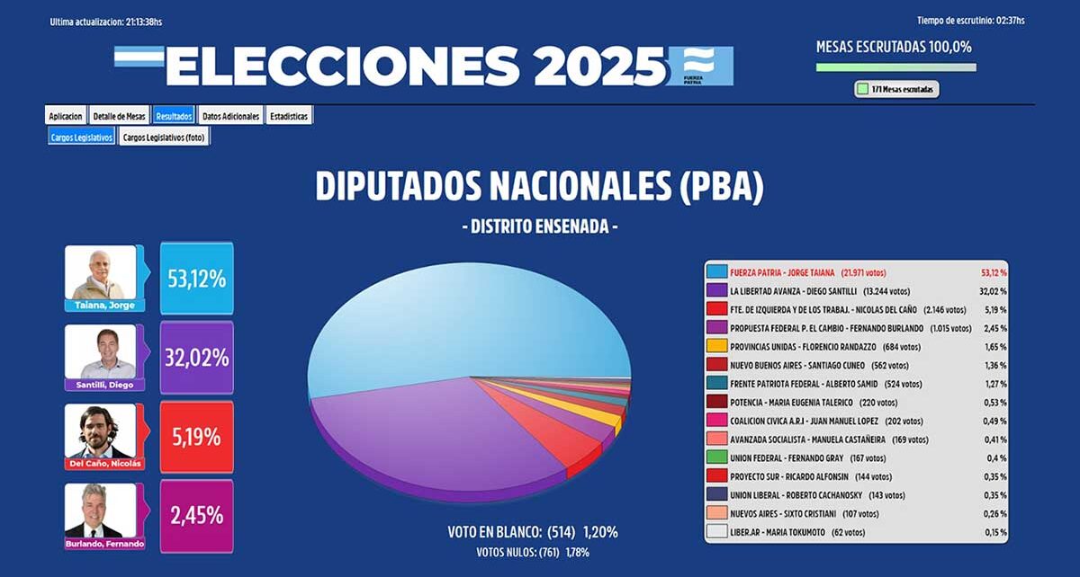 Con 20 puntos de diferencia a favor de Fuerza Patria, el Intendente Mario Secco logró uno de los mejores triunfos de la Provincia de Buenos Aires. Jorge Taiana alcanzó los 52, 85 % mientras que La Libertad Avanza llegó a los 32,03%. Luego se ubicó el Frente de Izquierda con 5.33 y el espacio de […]