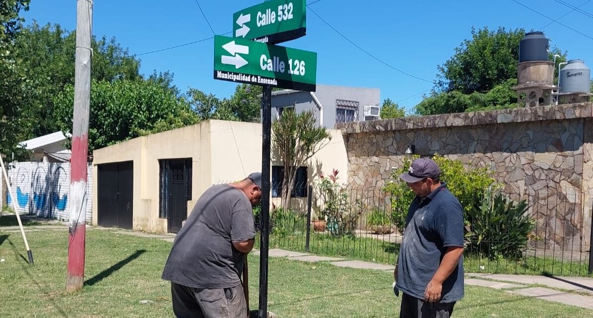 En forma paralela, sigue la colocación de nomencladores de calle y cartelería vial: en esta ocasión, en el Barrio Vareadores y en Villa Catella.