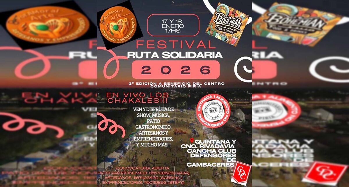 Este fin de semana se realizará un festival de “Ruta solidaria”, un evento que en este caso apunta a recaudar alimentos no perecederos para el Merendero y Olla Popular del Centro Comunitario Piria de Punta Lara.