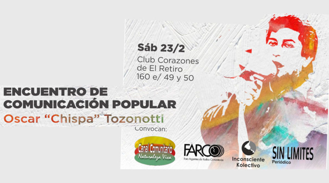 Este sábado 23 de febrero tendrá lugar el 1º Encuentro de Comunicación Popular “Oscar Chispa Tozonotti”, en el Club Corazones del barrio El Retiro, en 160 entre 49 y 50, de la vecina ciudad de La Plata, al que han sido invitados Medios y organizaciones de toda la región, desde las 14 horas. El encuentro […]