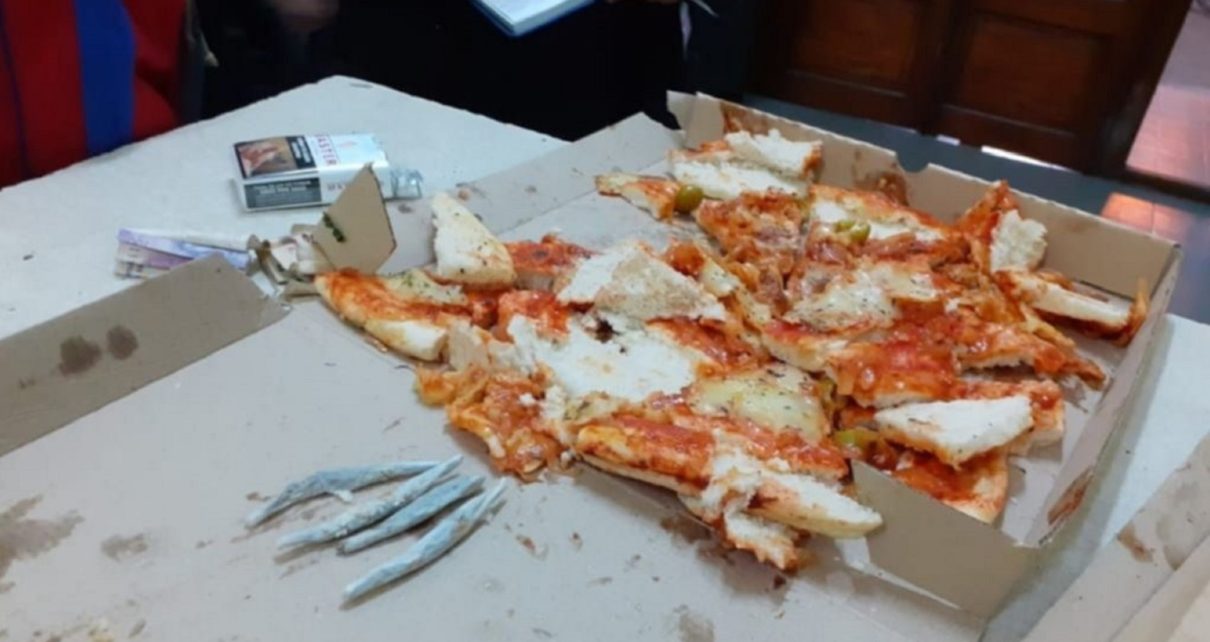 Le llevó dos pizzas con marihuana a un detenido en Punta Lara y lo descubrieron